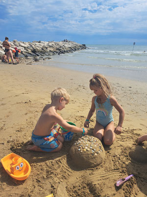 Im Zelt haben wir ein Unwetter erlebt - zum Glück hat es dicht gehalten, aber tagsüber hatten wir immer Traumwetter. Dieser Urlaub wird mir immer in besonderer Erinnerung bleiben, da es wirklich der erste Urlaub "ohne Handy" war. Wir haben uns bewusst dazu entschieden, erst aufs Handy zu schauen wenn die Kinder schlafen....das war so schön. Pure Familienzeit - Sand und Wasserspaß!
